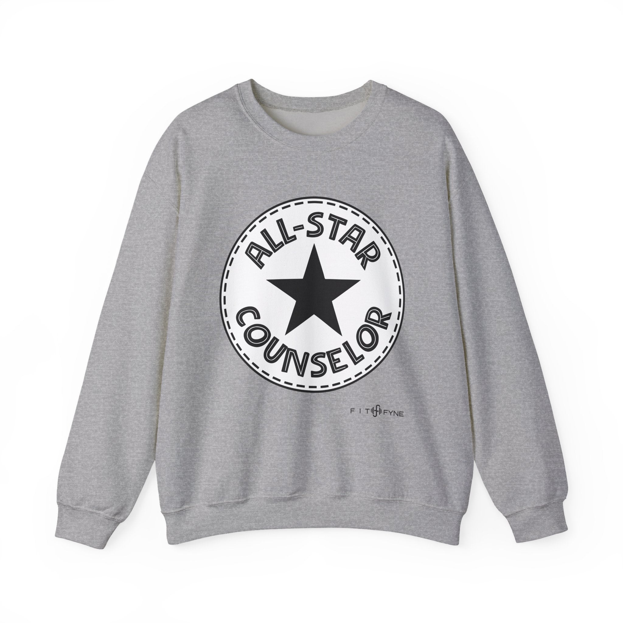 This cozy crewneck sweatshirt carries a vintage-inspired badge print that reads “All-Star Counselor,” a quiet nod to the late nights, improv solutions, and small victories that make counseling meaningful. The soft, medium-heavy fabric drapes comfortably while the clean crew neckline and ribbed cuffs hold their shape through many washes. Wear it on campus, during client prep, or on slow Sunday mornings — it settles like a warm exhale and quietly celebrates the work you do! Subtle enough for everyday wear, bold enough to spark recognition among colleagues and students.